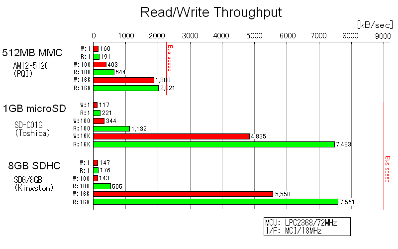 このように、アプリケーションはなるべく大きなブロック(クラスタ サイズまたは2の累乗セクタ境界にアライメントした)で読み書きを行う必要があります。もちろん、アプリケーションからメディアに至る全てのレイヤがマルチ セクタ転送に対応していないと意味がありません。残念ながら、既存のオープン ソースのドライバの多くはマルチ セクタ転送に未対応です。なお、FatFsモジュールおよびサンプル ドライバはマルチ セクタ転送に対応しています。
